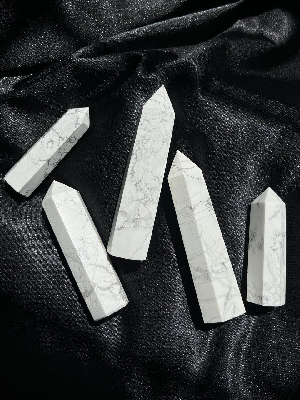 What is usually marketed as howlite is actually magnesite, and these "howlite" towers are no different. It's still the same elegant, marble-esque white and grays you love no matter the name though! Pick your favorite from the options below: